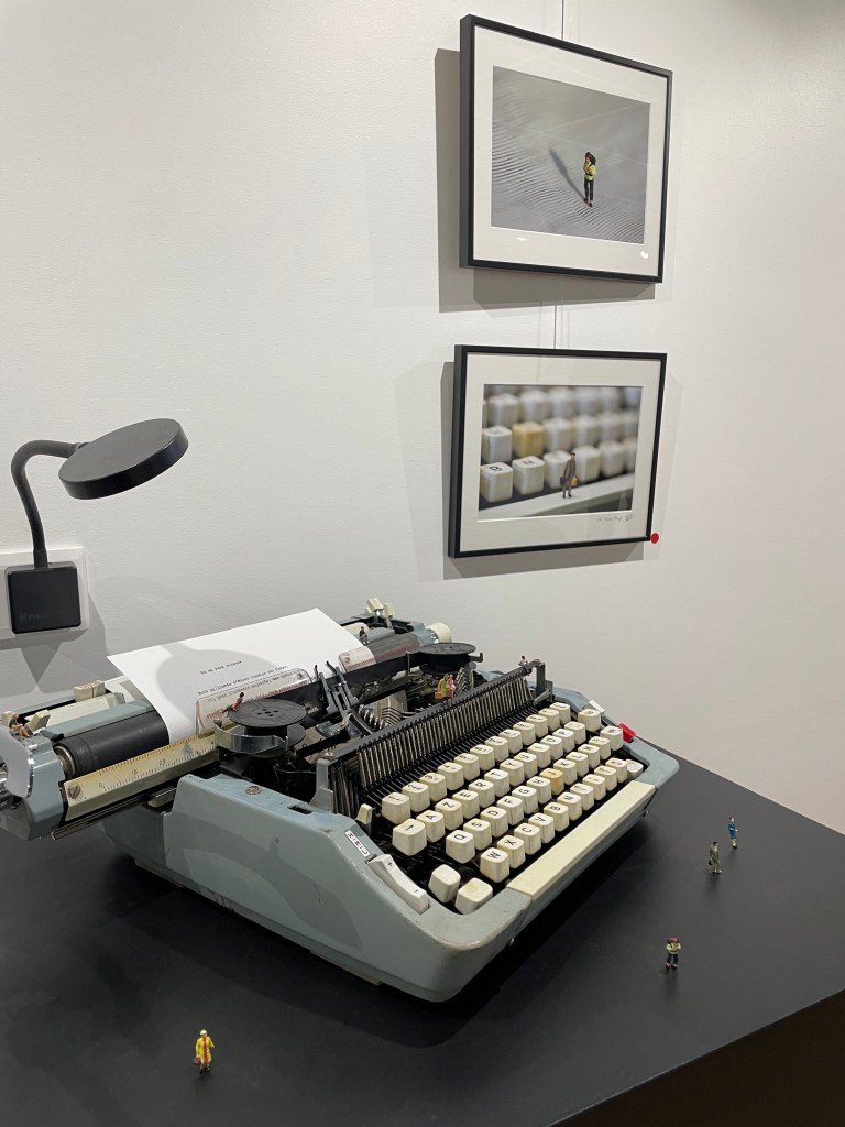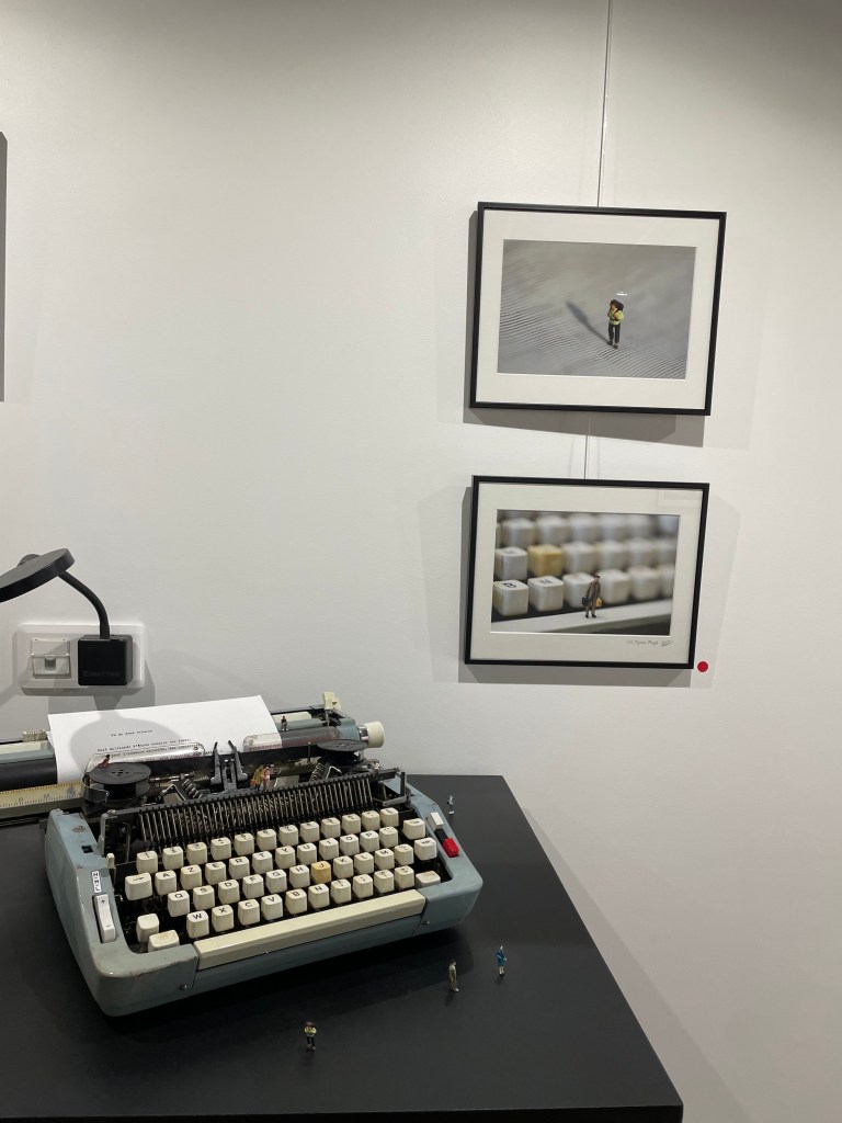 L’humain est au coeur de la mise en scène, en représentation, car ses personnages sont de tout petits objets disposés, seuls, dans une profonde émotion d’apaisement, spectateurs de ce qui les entoure, et d’eux-mêmes peut-être… » Julie Anne B., galeriste